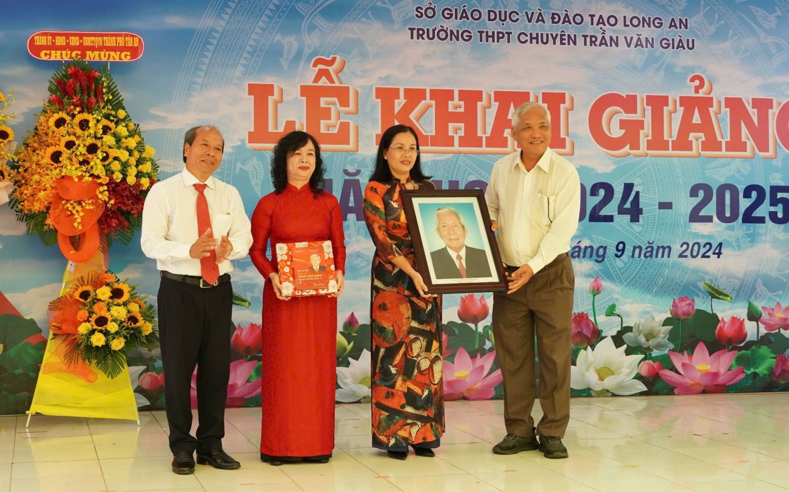 Nhân dịp lễ khai giảng, Trưởng Ban Tuyên giáo Tỉnh ủy Hoàng Đình Cán đã trao tặng tập sách ảnh "Giáo sư Trần Văn Giàu với quê hương Long An" và bức ảnh chân dung của cố Giáo sư Trần Văn Giàu cho nhà trường, được thực hiện bởi Nghệ sĩ nhiếp ảnh Tôn Thất Hùng. Ngoài ra, UBND phường 4 cùng các mạnh thường quân đã trao học bổng khuyến học và khuyến tài cho các em học sinh có hoàn cảnh khó khăn, tiếp sức các em trên con đường học tập.